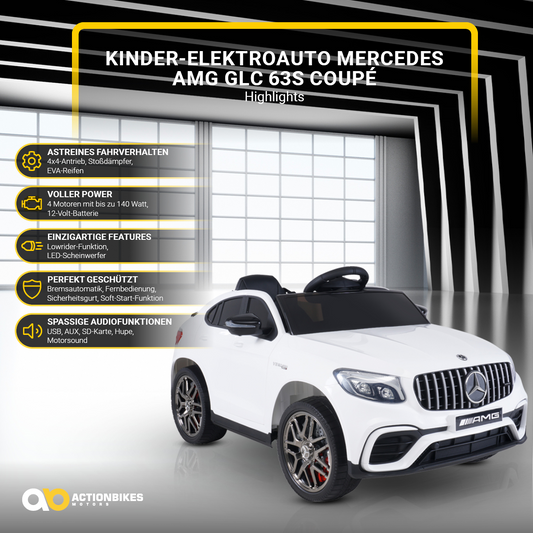Kinder-Elektroauto Mercedes AMG GLC 63S Coupé, 4x4-Antrieb, Fernbedienung, 140 Watt, LED, EVA-Reifen