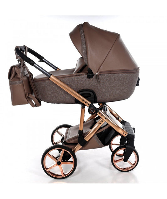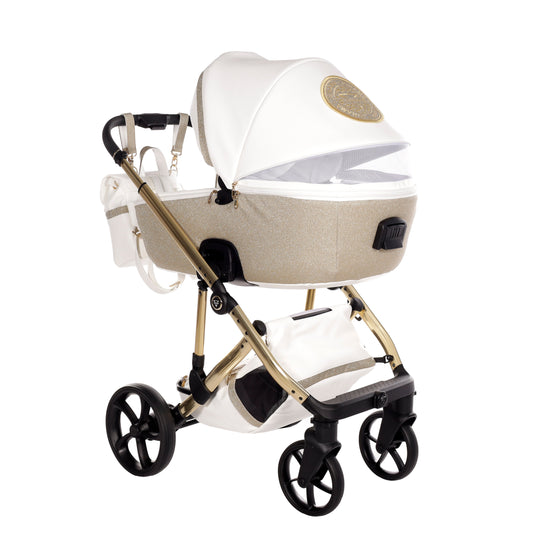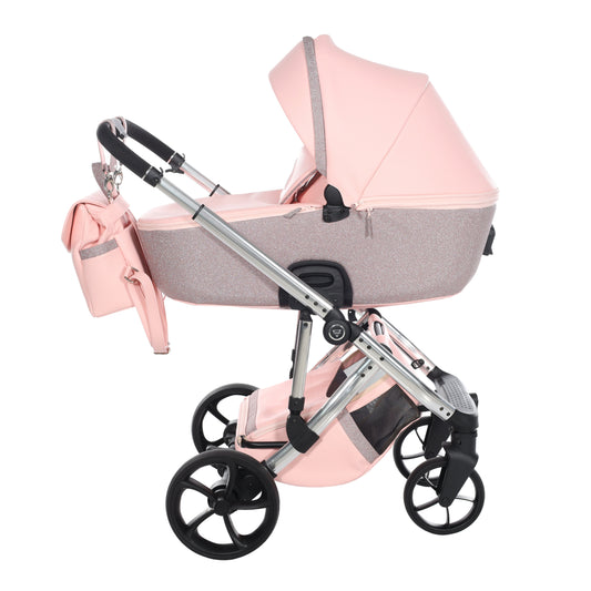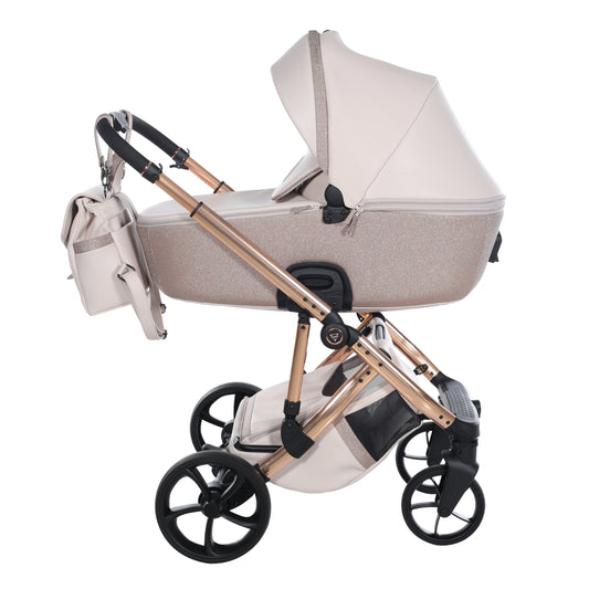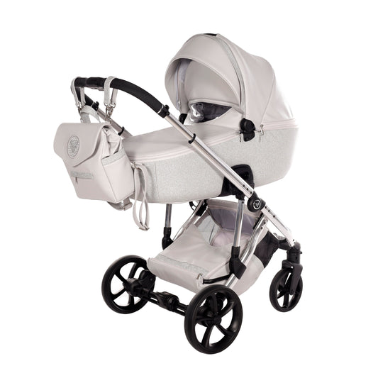 Entdecken Sie den Junama Glitter Eco. Erhältlich als 2-in-1 oder 3-in-1 Kinderwagen. Zusätzlich können Sie Ihr individuelles Zubehör zu diesem Kinderwagen gestalten. Zur Auswahl stehen: Ein Autositz mit Adapter, ein Schlafsack, Handwärmer, Sonnenschirm, ein Pelz. Ebenso erhältlich wäre ein Isofix für den Autositz.