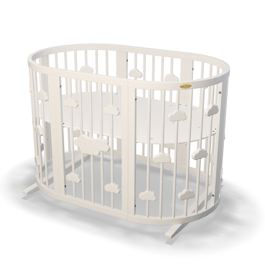 Smart Bed Round 9-in-1-Babybett, umbaubar, mit Wolkenmotiv, elfenbeinfarben