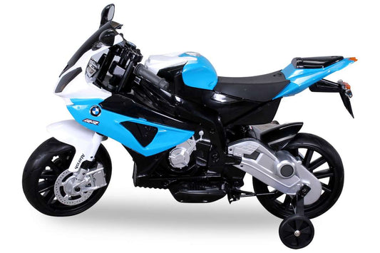 Kindermotorrad BMW S 1000 RR, lizenziert, 70 Watt, EVA-Vollgummireifen, Stützräder, 12 V, Soundmodul