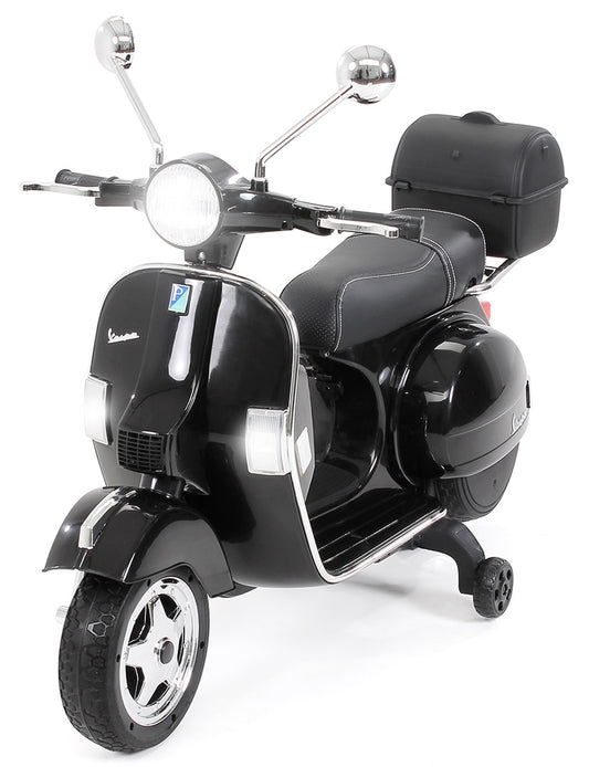 Kinder-Elektroroller Vespa, lizenziert, EVA-Reifen, LED-Scheinwerfer, Koffer, Soundmodul, Stützräder