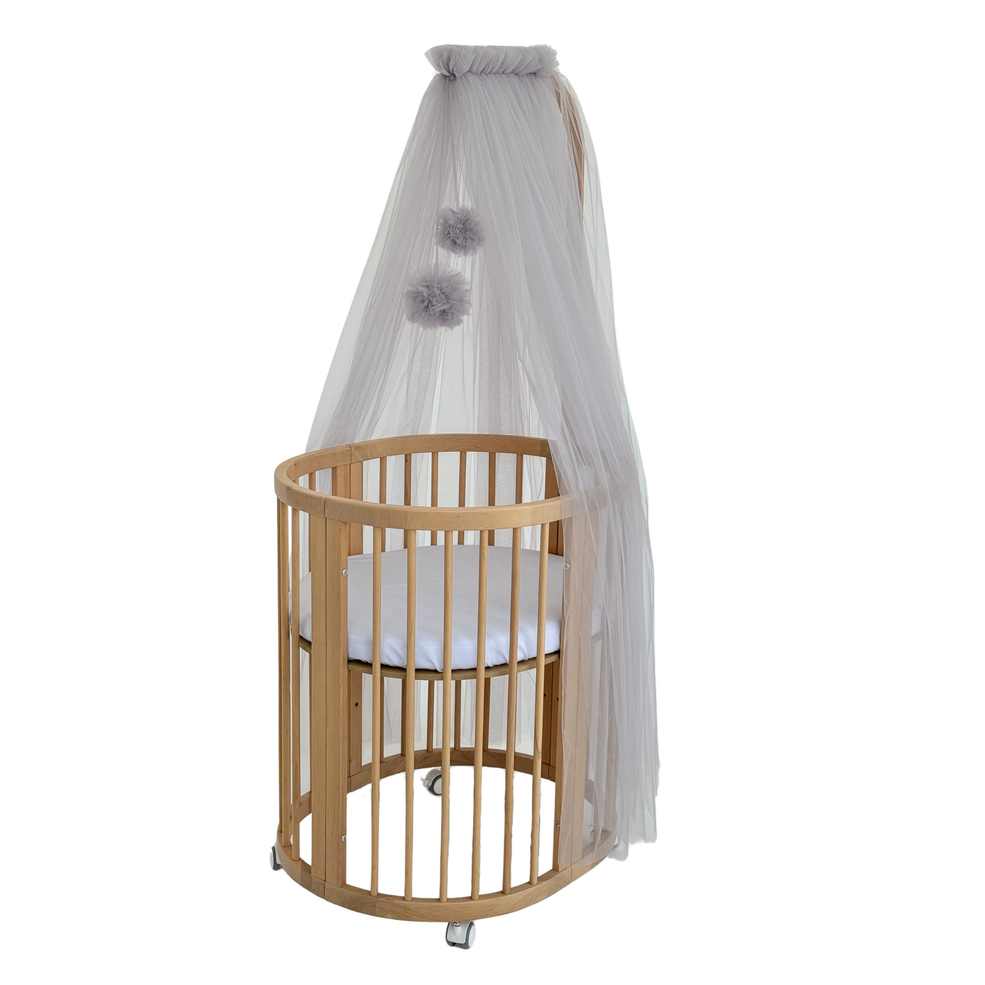 Baldachin mit Pompons, hellgrau