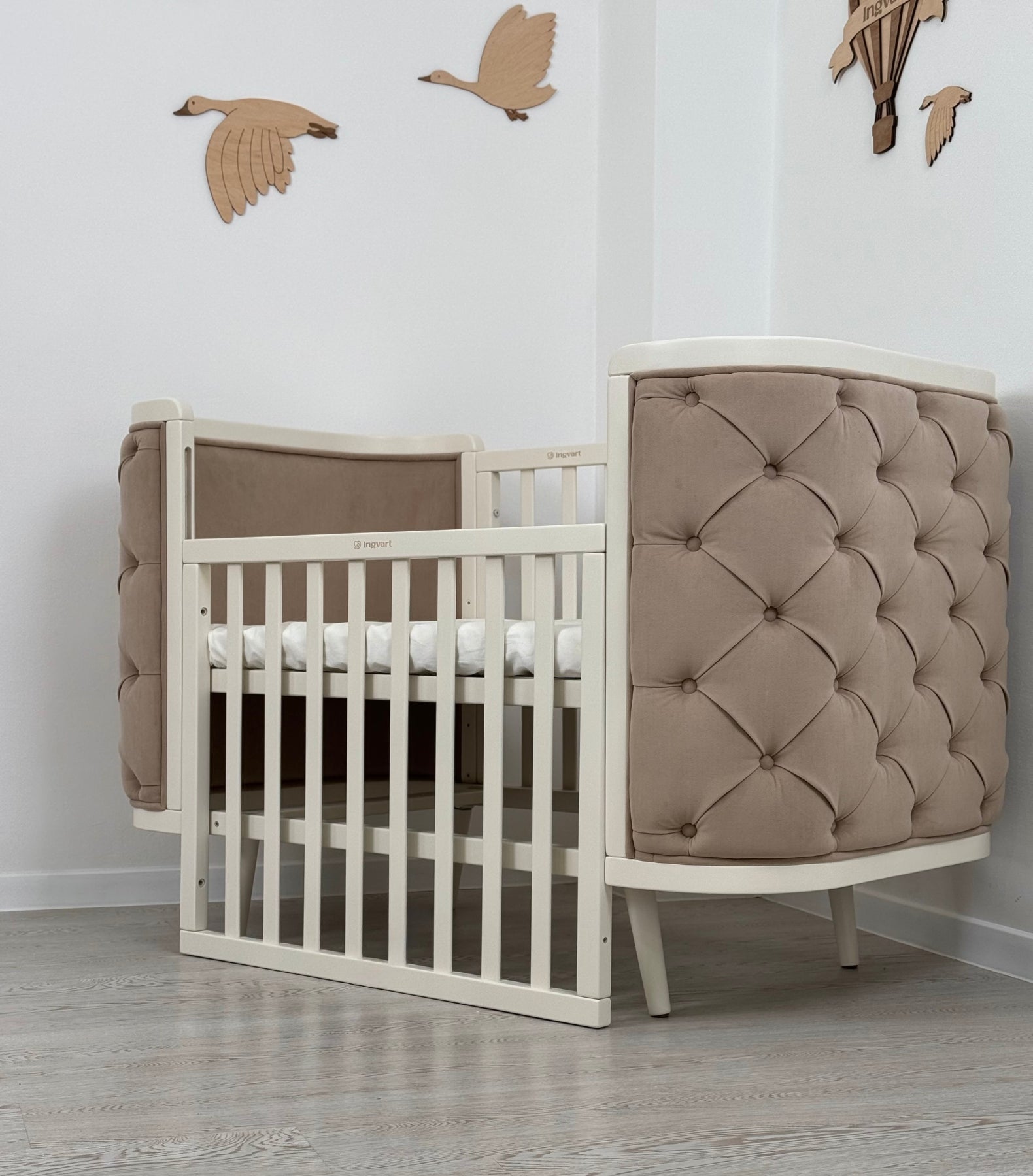 Das Boho-Kinderbett lässt sich, wie alle Kinderbetten von Ingvart, an das Alter des Kindes anpassen: