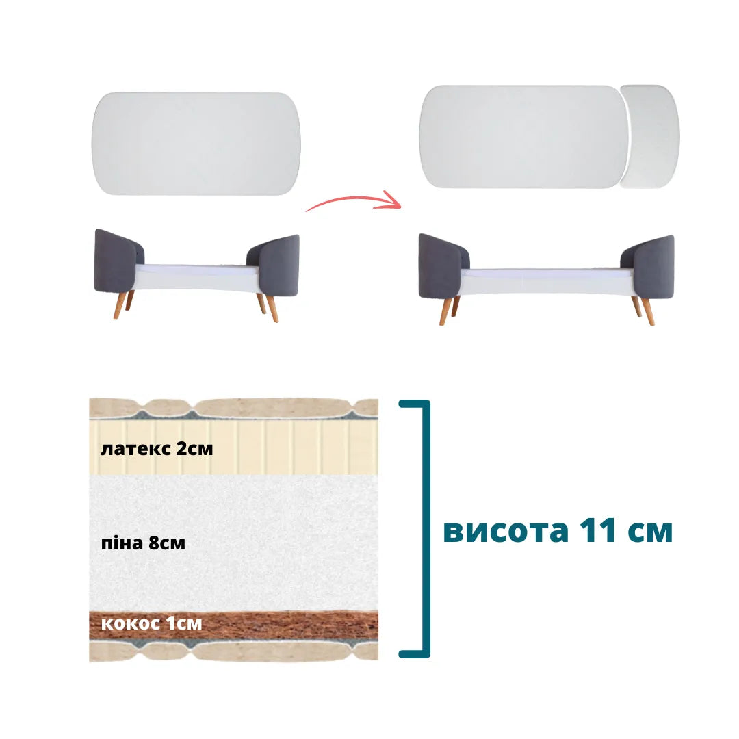 Crescent-Matratze für Fly-Kinderbett mit Kokosfüllung (1 cm) + Schaumstoff (8 cm) + Latex (2 cm).