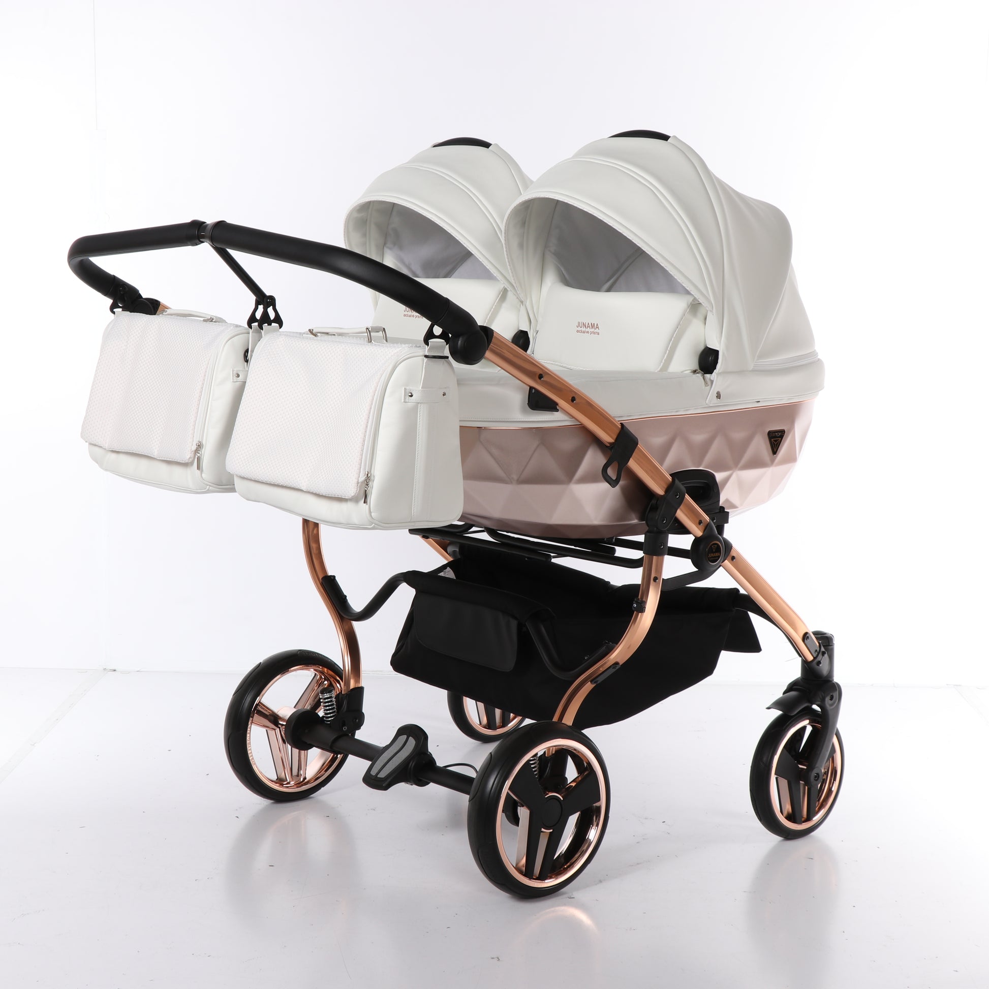 Dich erwartet ein modischer Zwillingskinderwagen, der, wie man es von JUNAMA gewöhnt ist nicht nur mit seiner Optik besticht, sondern vor allem mit der Verarbeitung ausgewählter Materialien.