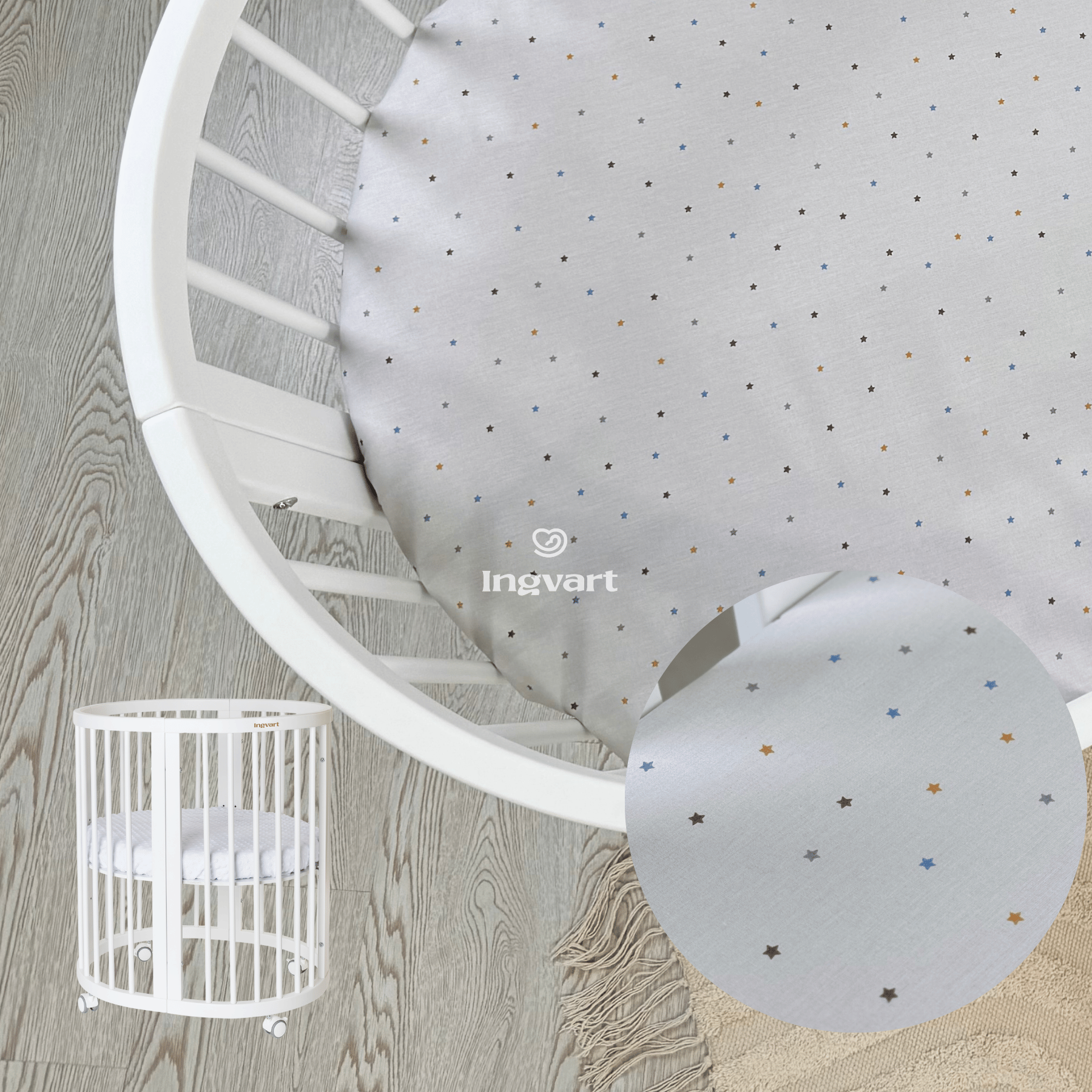 Matratzenlaken aus Baumwolle, 72 x 72 cm, „Mehrfarbige Sterne auf Grau“, Ranfors