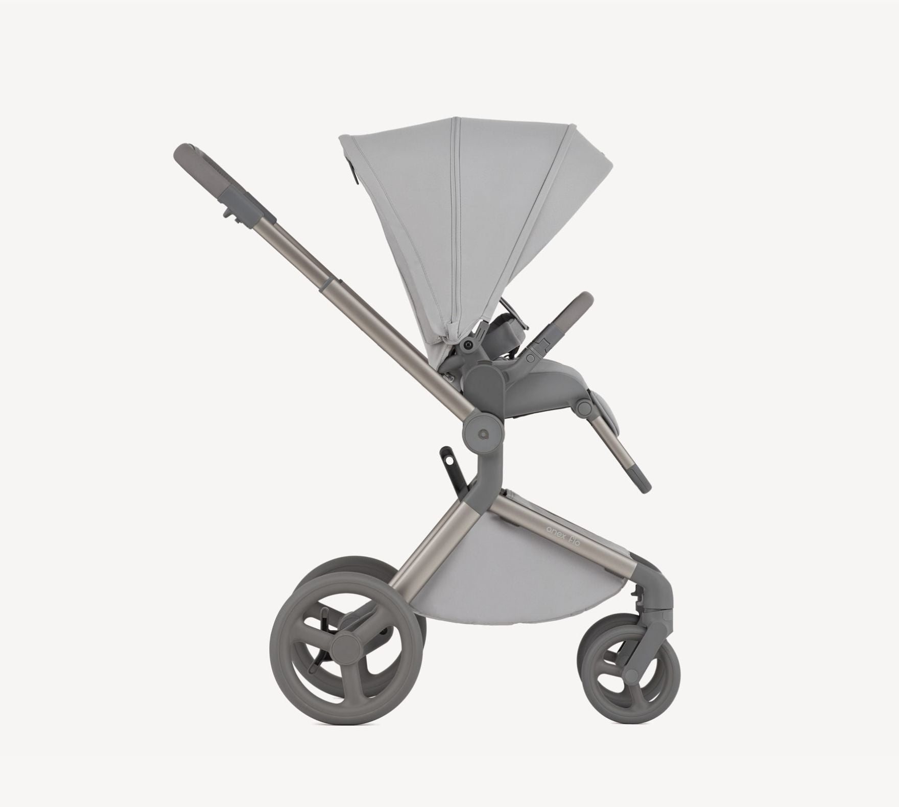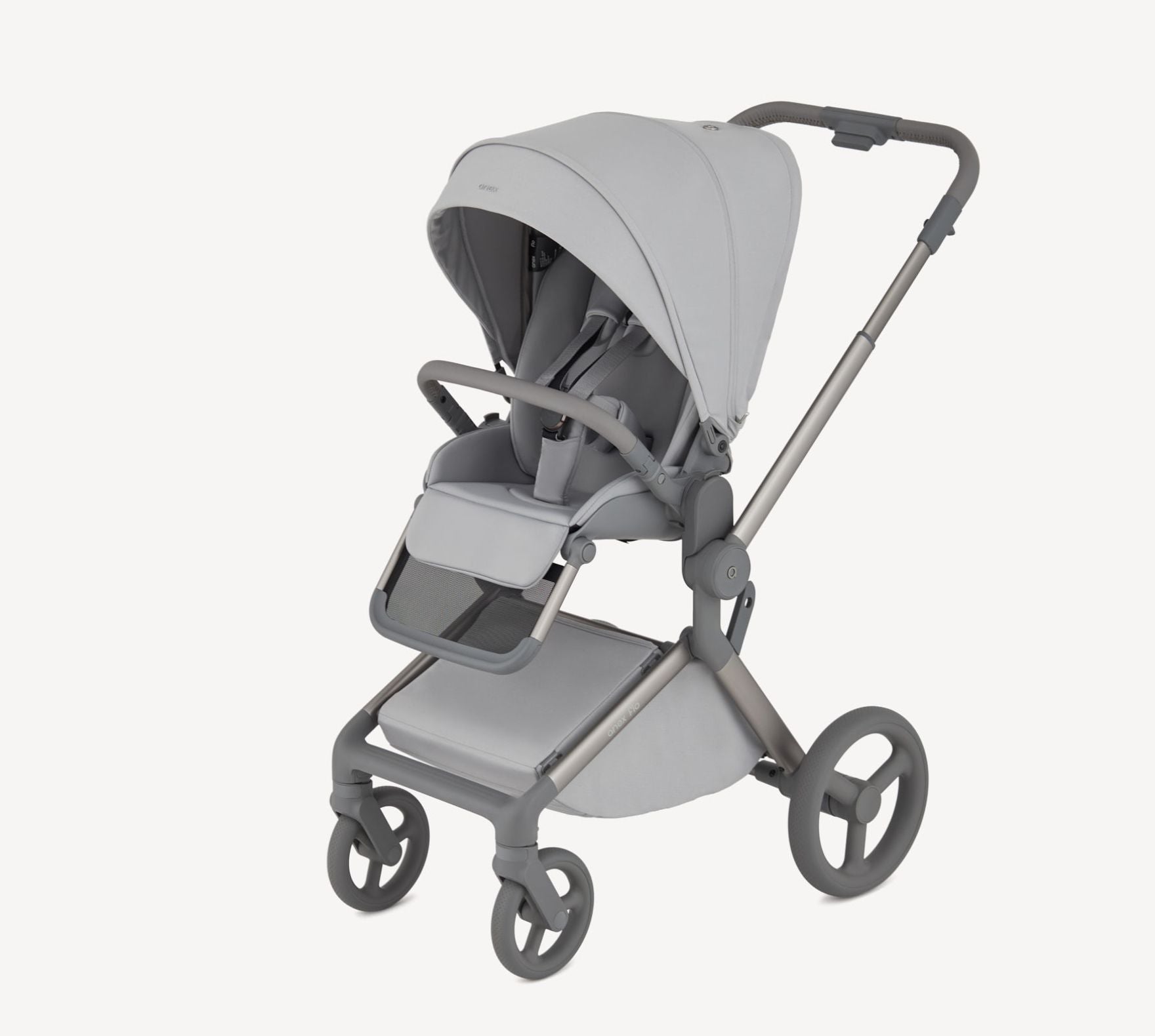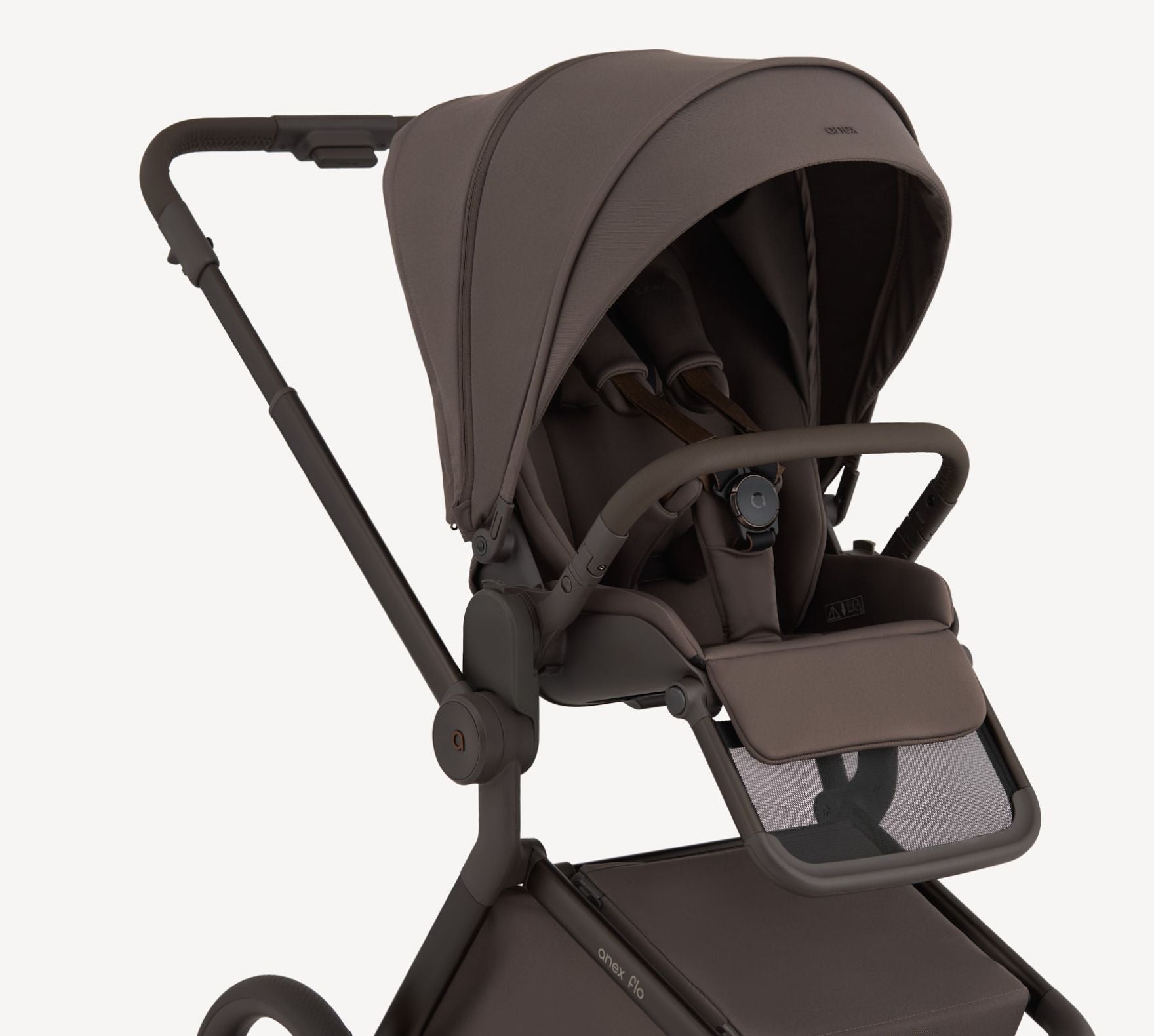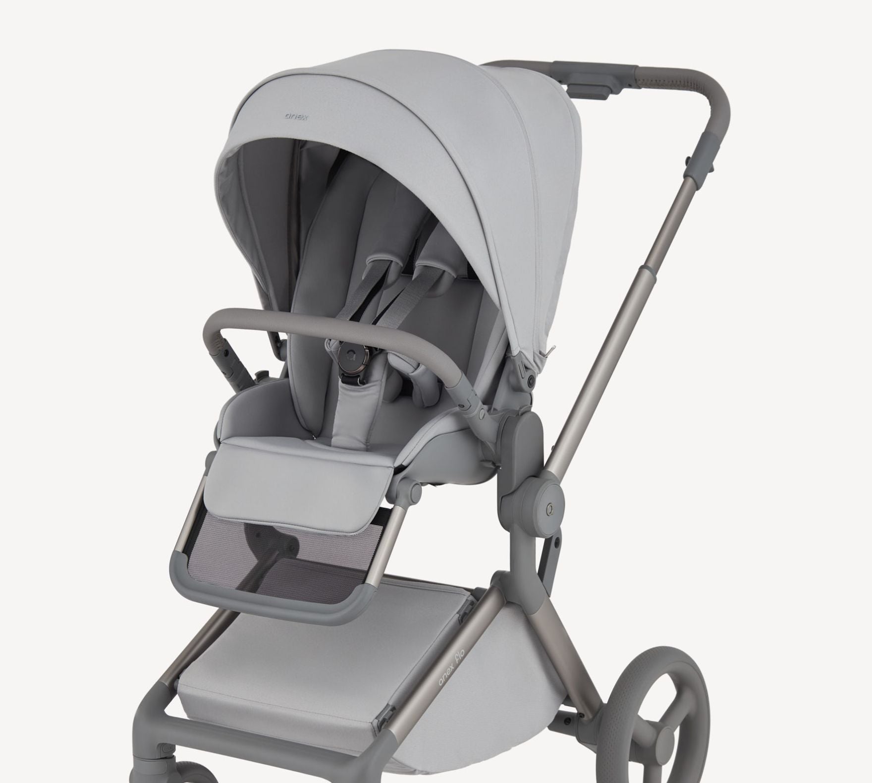 Mit einem großen, erweiterbaren Stauraumkorb und diesen durchdachten Designelementen passt sich der Anex Flo Kinderwagen mühelos deinen Bedürfnissen an und wird zum verlässlichen Begleiter für aktive Eltern unterwegs.