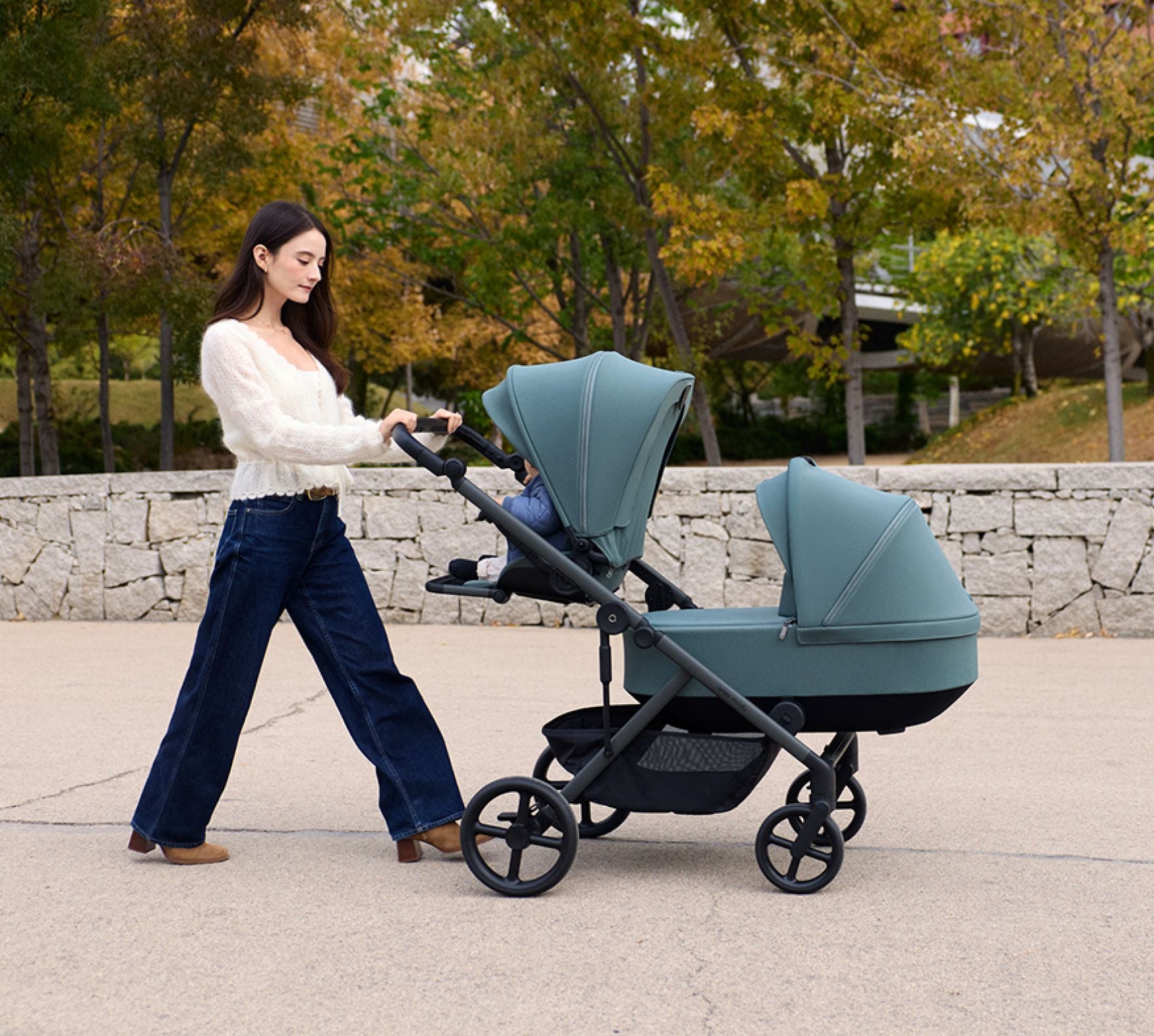 Der Mod kann mit einem zusätzlichen Sitz oder einer Tragetasche erweitert werden, wodurch ein Set für Zwillinge oder Geschwister entsteht.
