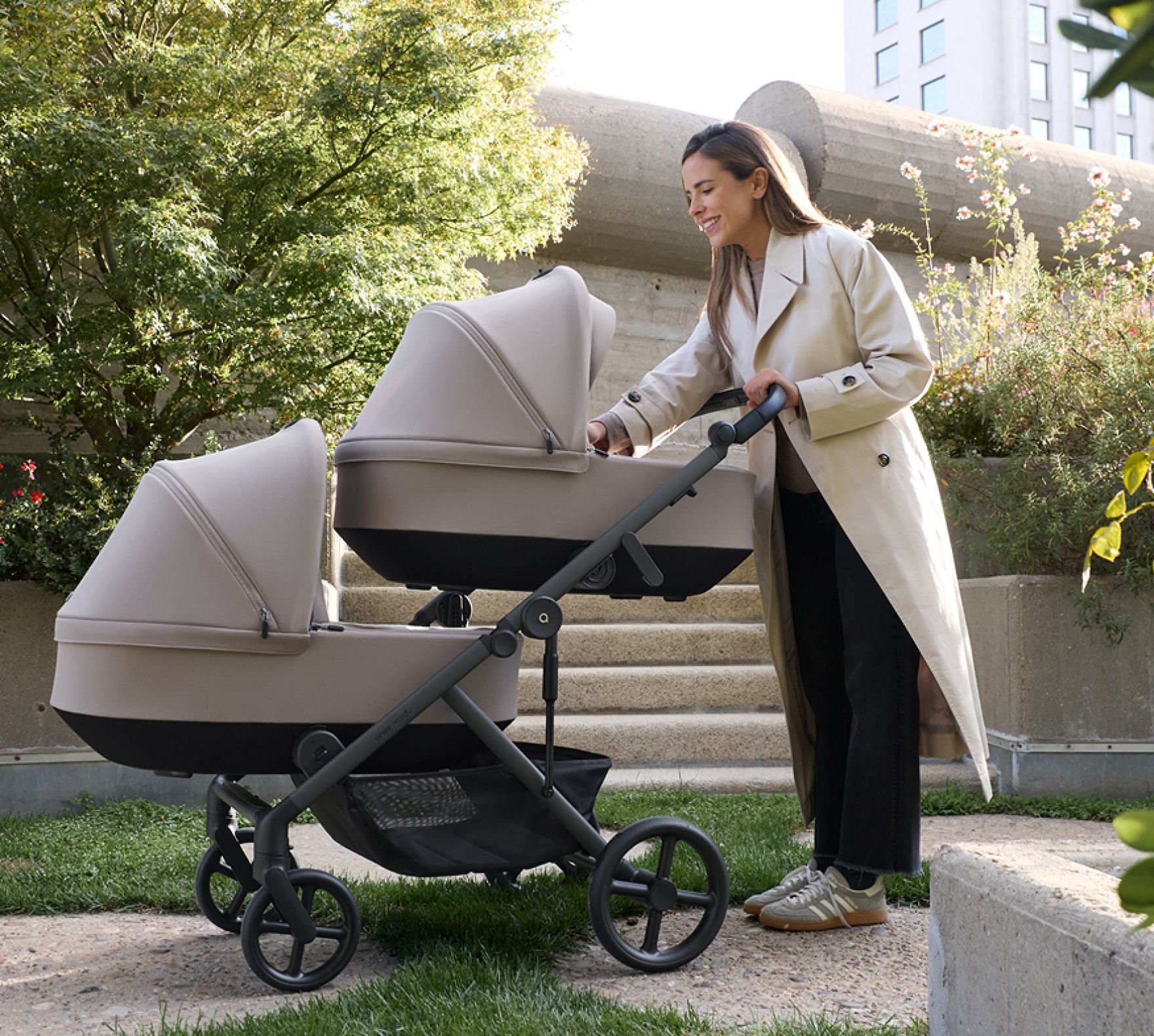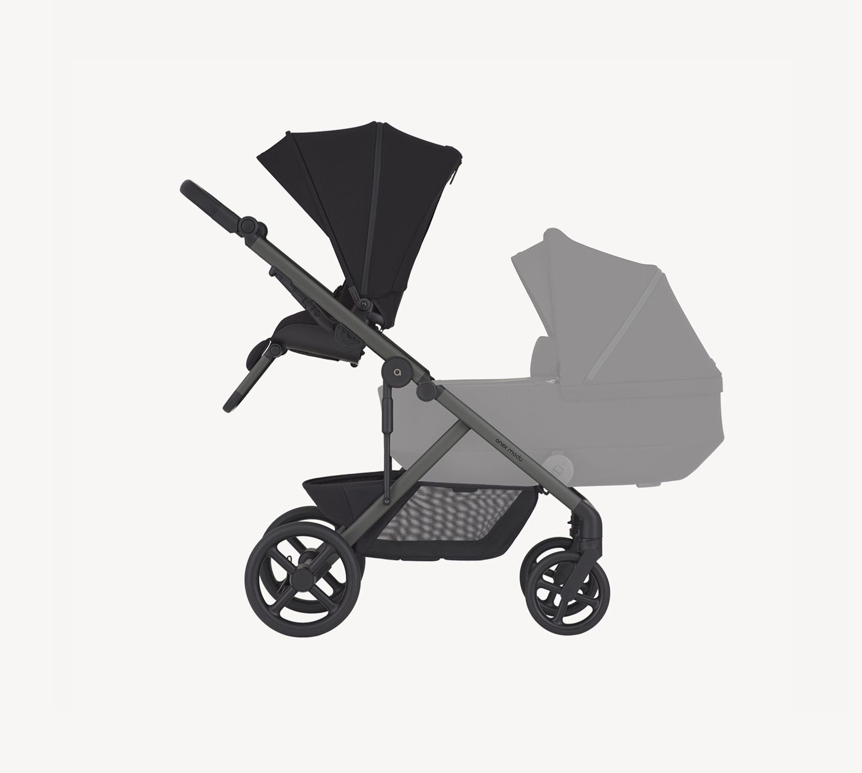 Anex Modu 2in1 ist ein Kinderwagen, der eine Tragewanne und einen Kinderwagen in einem Set kombiniert. Dank des innovativen Rahmens können Sie mehr als 35 Konfigurationen verwenden - von einem einzelnen Set bis zu einer Version für Zwillinge. Leichte Konstruktion, modernes Design und praktische Lösungen machen Modu zum perfekten Begleiter für tägliche Spaziergänge und lange Reisen.
