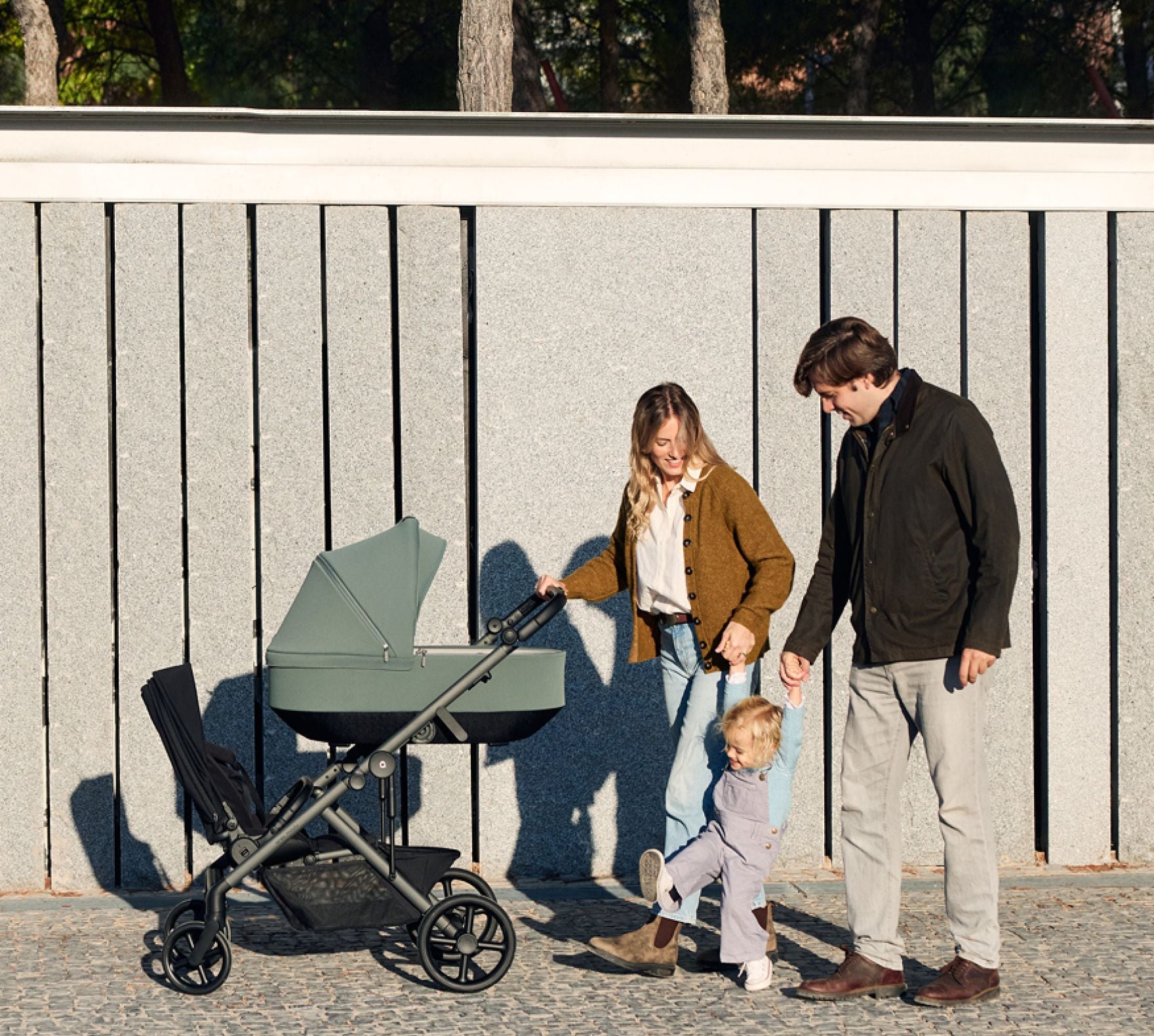 Ein geräumiger Korb unter dem Kinderwagen bietet Platz für Lebensmittel, eine Tasche oder Zubehör. Es ist leicht zugänglich und langlebig.