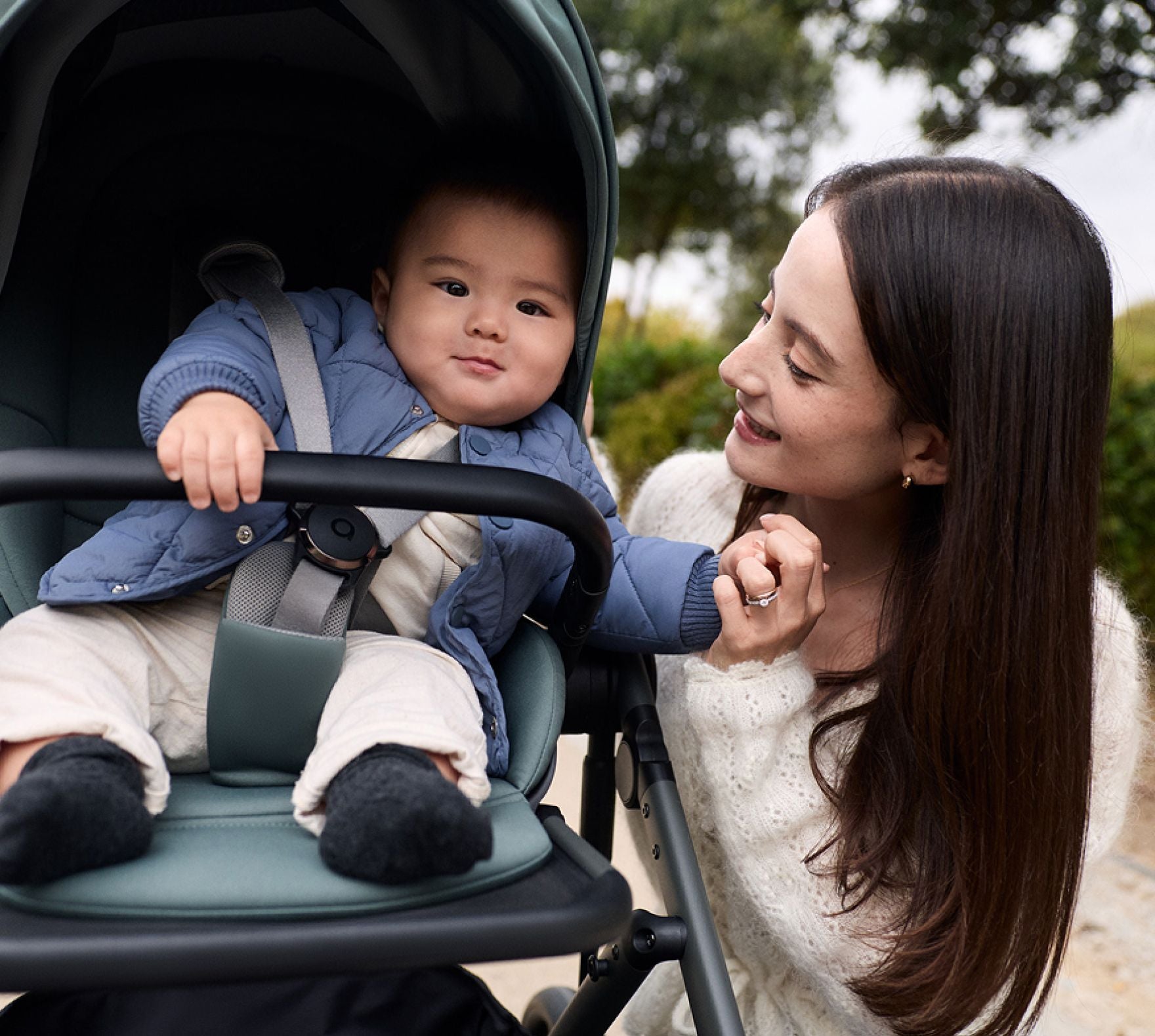 Die Babzwangen ist mit einer weichen Matratze ausgestattet, die die richtige Position der Wirbelsäule stützt. Die Kabine mit UV-Filter und Belüftung bietet Komfort von den ersten Lebenstagen an.