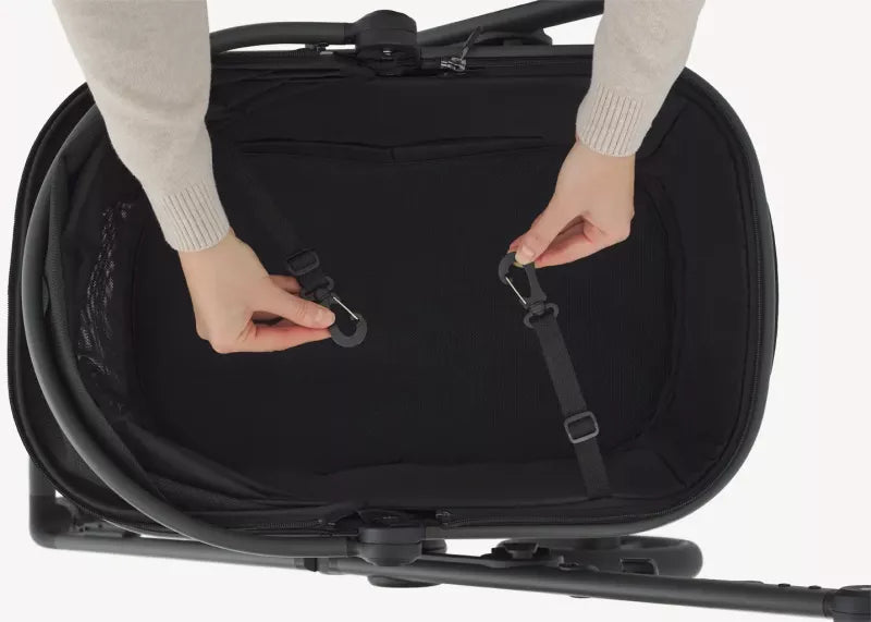 Ein sicherer und gemütlicher Platz für dein Haustier auf dem Anex Modu Kinderwagen.