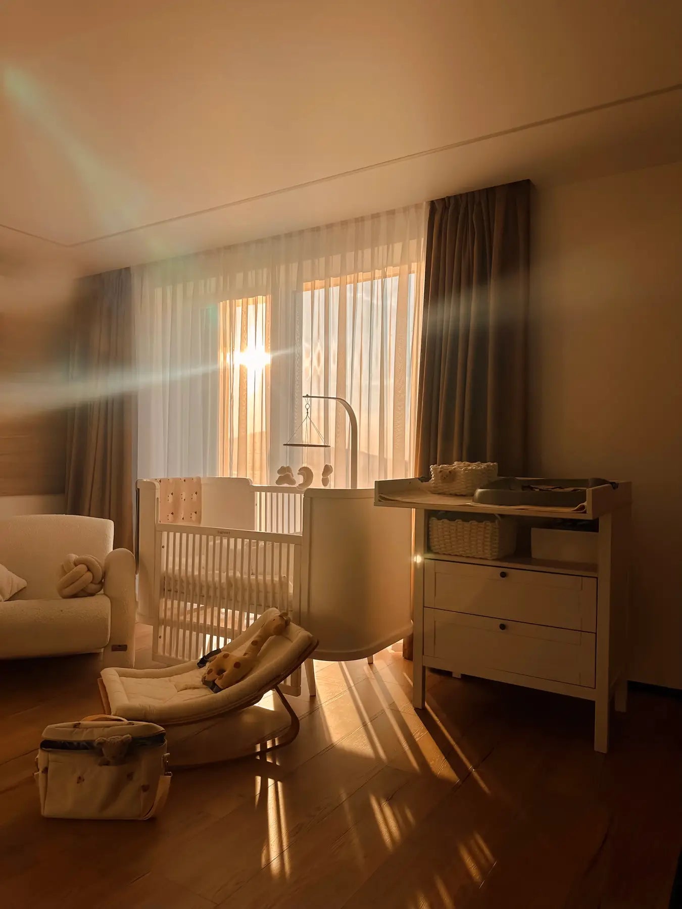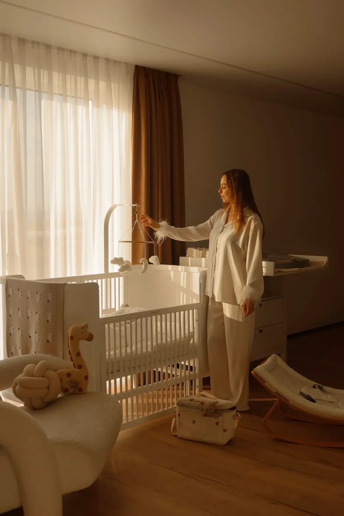 Das Kinderbett verfügt über 5 Höhenstufen am Boden – so können Sie die bequemste Höhe wählen, in der Sie leichter mit dem Kind interagieren können – und einen Neigungswinkel von 5 Grad für sicheres Spucken.