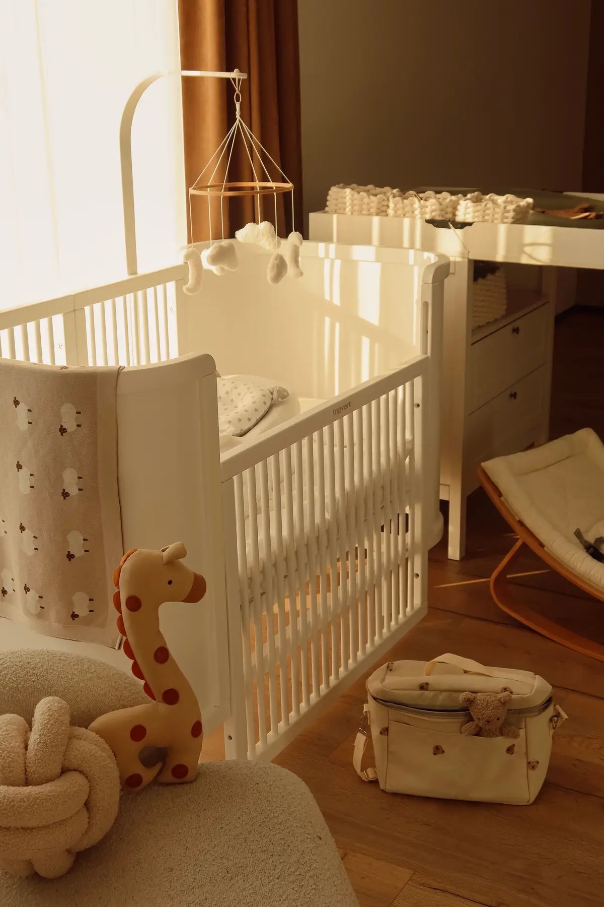 Im Preis des Kinderbetts ist außerdem eine bewegliche Wand gemäß europäischer Norm (Schutz vor Selbstöffnung) enthalten, die sowohl für die Babywiege (70x90 cm) als auch für das Kinderbett (70x134 cm) geeignet ist.