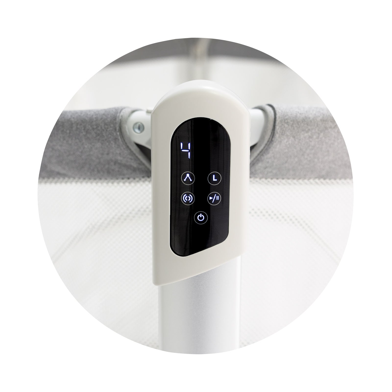 🕰️ 5 Schaukelgeschwindigkeiten & Smart-Timer (8, 15 oder 30 Minuten) – Komfortabel steuerbar über die elegante Fernbedienung mit LED-Display.
