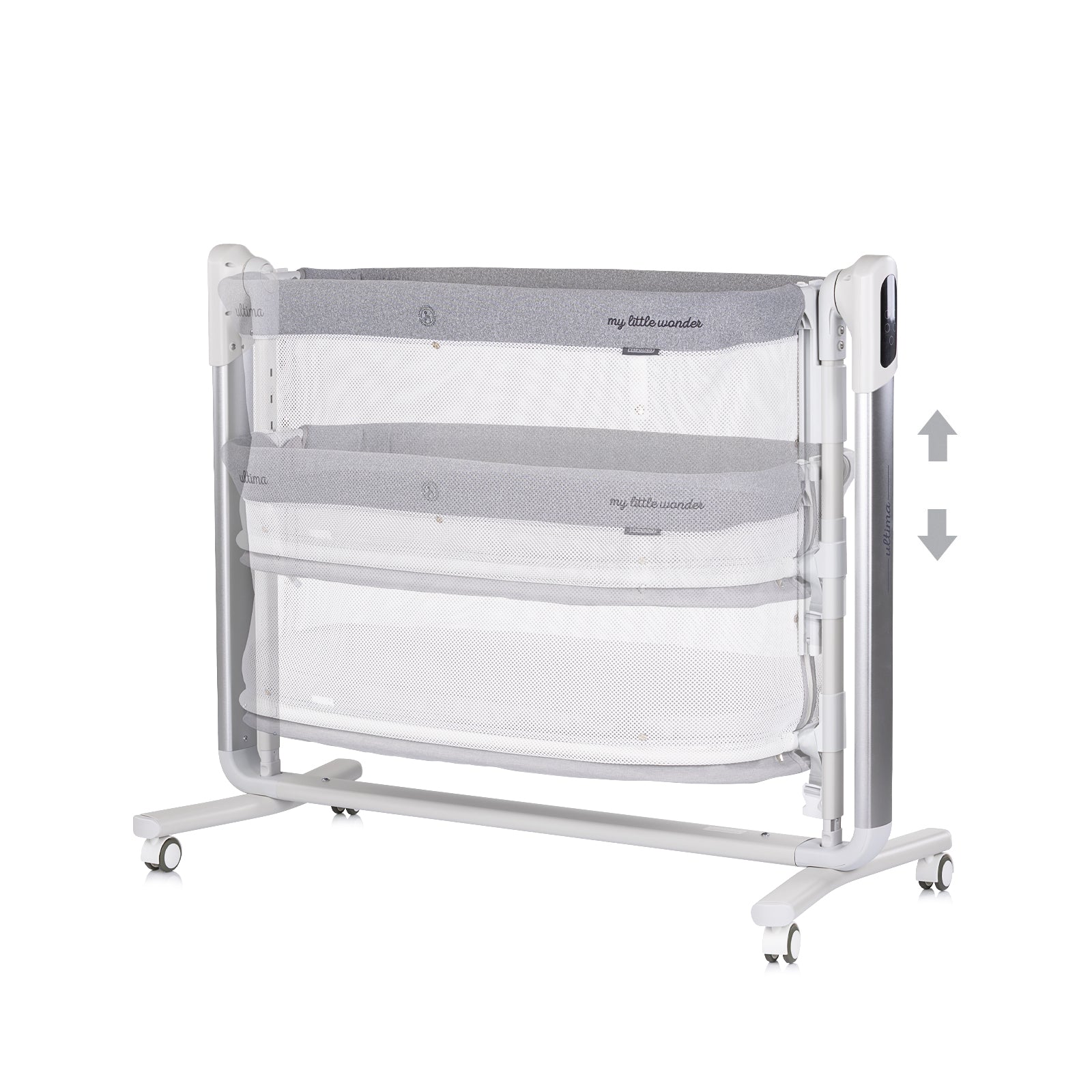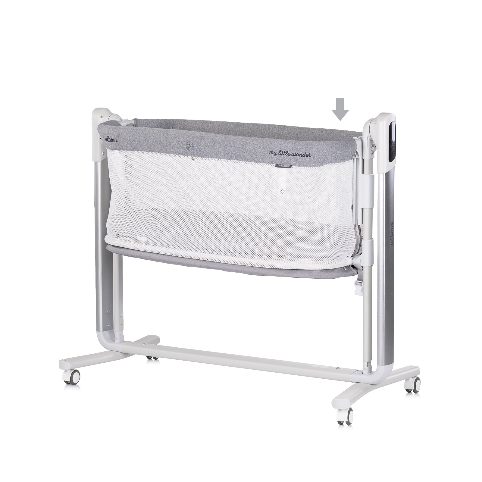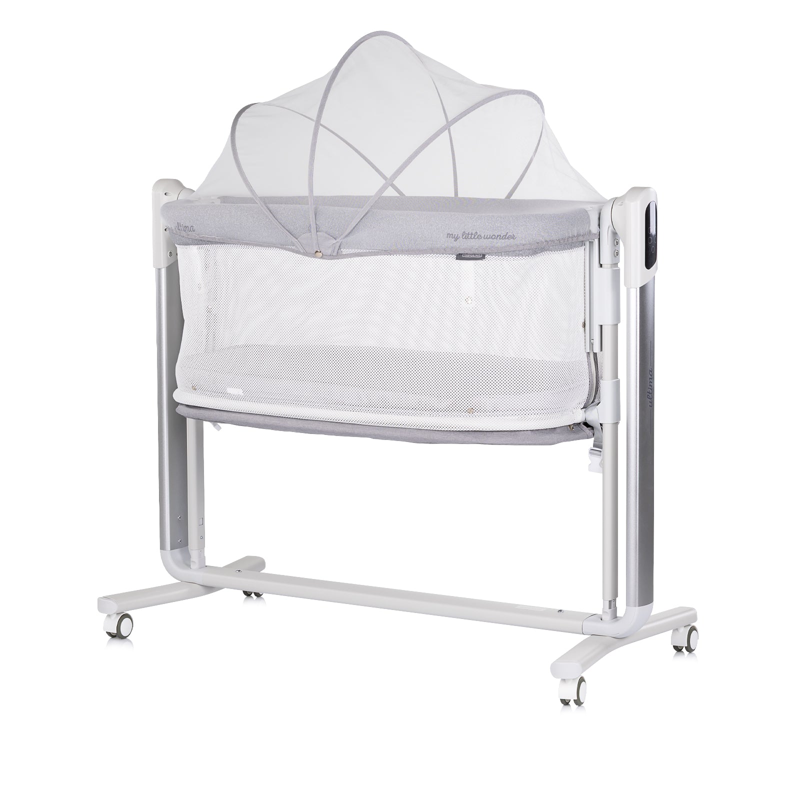 ELEKTRISCHES BEISTELLBETT / WIEGE MIT ABSENKBARER SEITE „ULTIMA“ – GREY