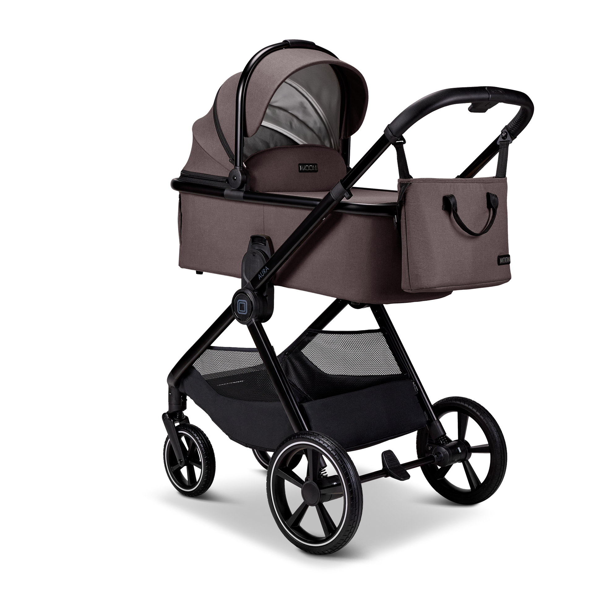 Dank des Höhenadapters liegt die Babywanne angenehm erhöht – ideal für einen rückenschonenden Zugang zu eurem Neugeborenen. Der praktische Einkaufskorb bietet Platz für alle wichtigen Dinge unterwegs, während das kompakte Handling den AURA besonders für den urbanen Alltag attraktiv macht.
