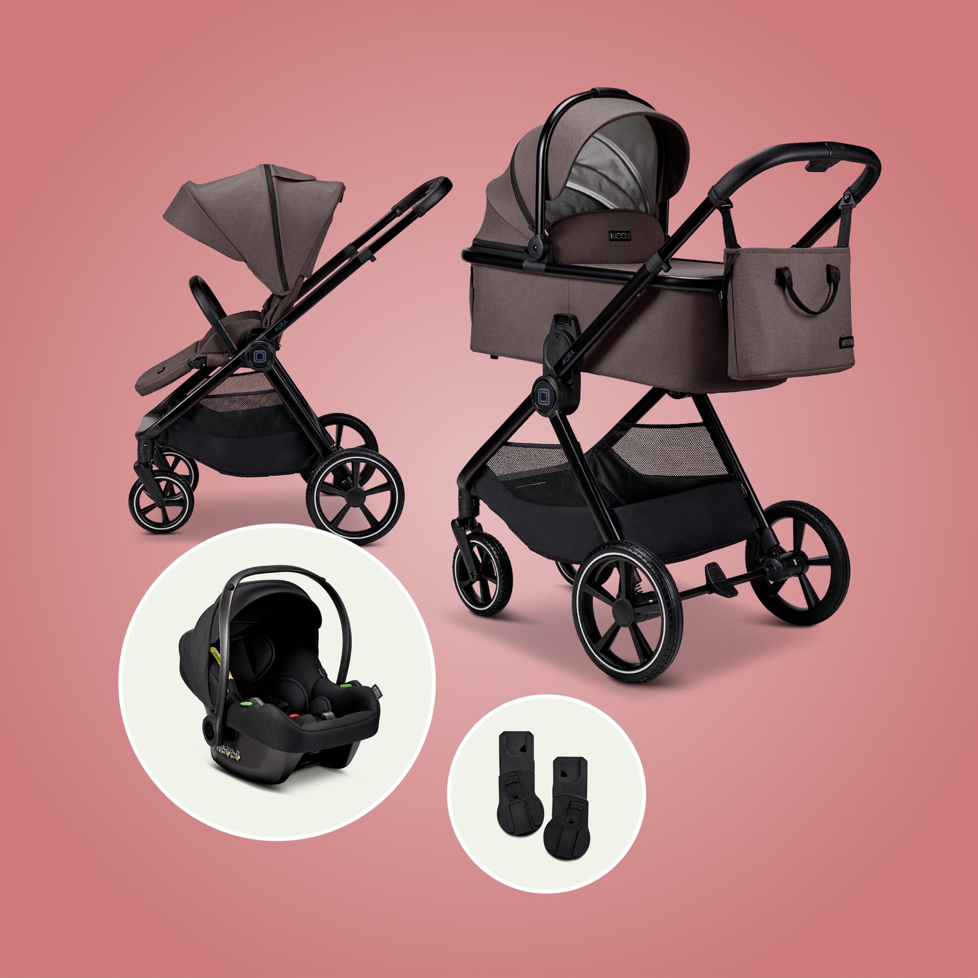 Erlebt Alltagstauglichkeit, Sicherheit und durchdachtes Design mit dem AURAKinderwagen in Kombination mit der sicherheitsgeprüften Babyschale COSMO 2.0. Dieses benutzerfreundliche Komplett-Set bietet alles, was ihr für die erste Zeit mit Baby braucht – vom ersten Tag bis zu den täglichen Ausflügen im Kleinkindalter.
