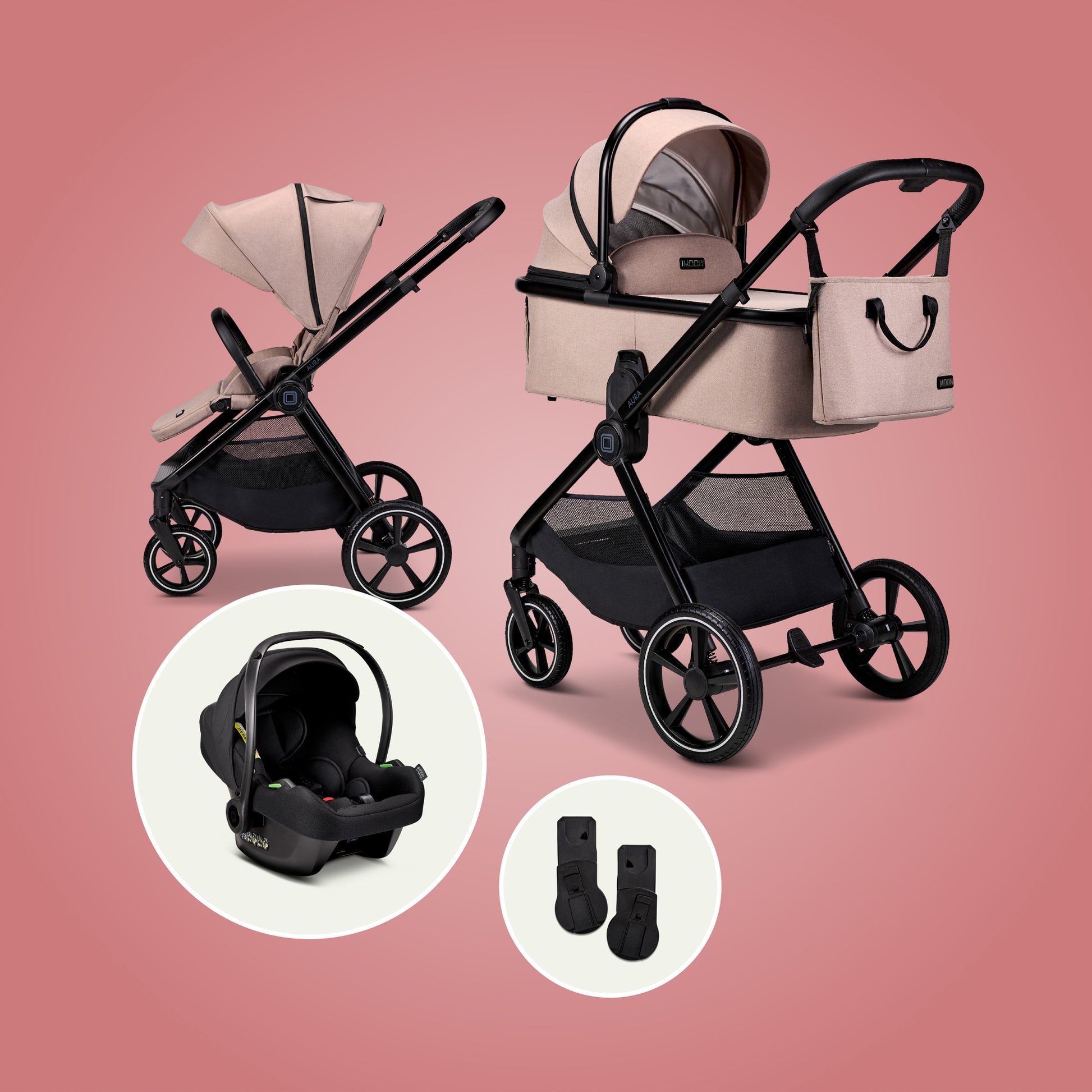 Erlebt Alltagstauglichkeit, Sicherheit und durchdachtes Design mit dem AURAKinderwagen in Kombination mit der sicherheitsgeprüften Babyschale COSMO 2.0. Dieses benutzerfreundliche Komplett-Set bietet alles, was ihr für die erste Zeit mit Baby braucht – vom ersten Tag bis zu den täglichen Ausflügen im Kleinkindalter.